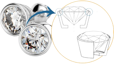 A metal rim surrounds a diamond or gemstone by the girdle to secure it in place. This dramatic setting style can create the illusion of a larger stone.