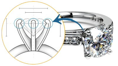 In this classic setting, two or more prongs wrap around the crown of a stone to secure it in place. Also known as a claw setting, this mounting style minimizes the amount of metal used, allowing more light to pass through a diamond or gemstone. Four prongs are most desirable for setting princes diamonds, and other cuts with delicate corners